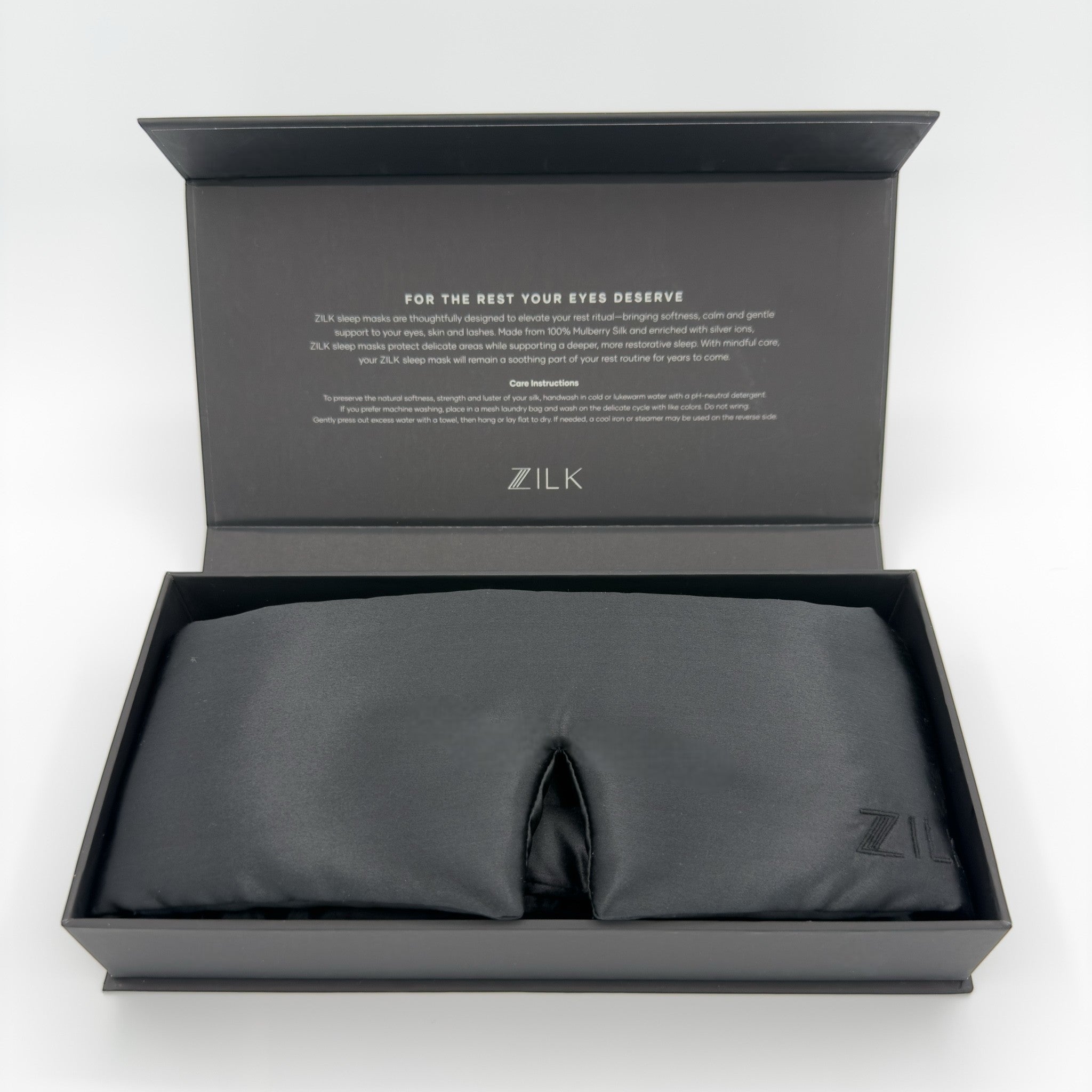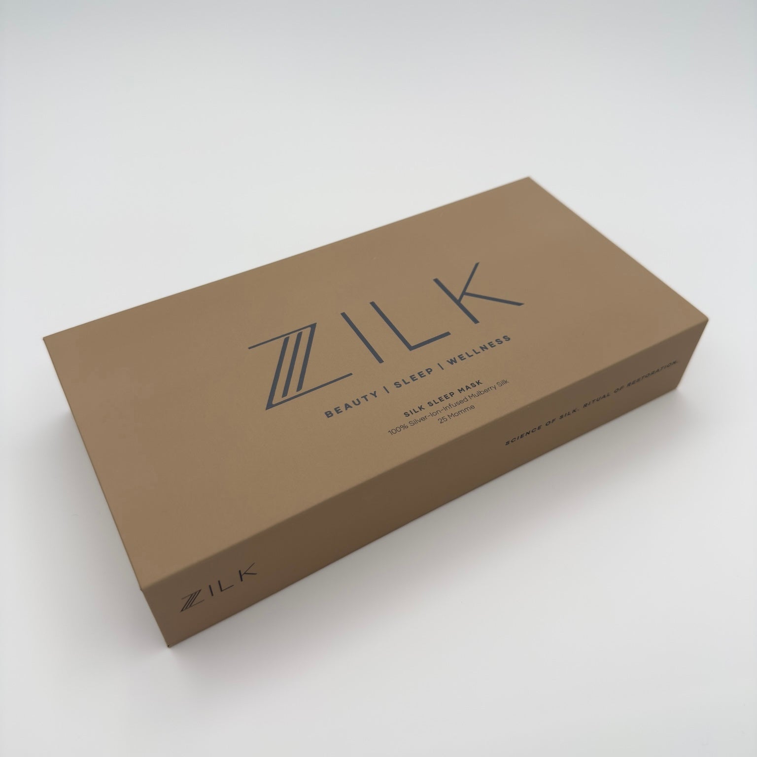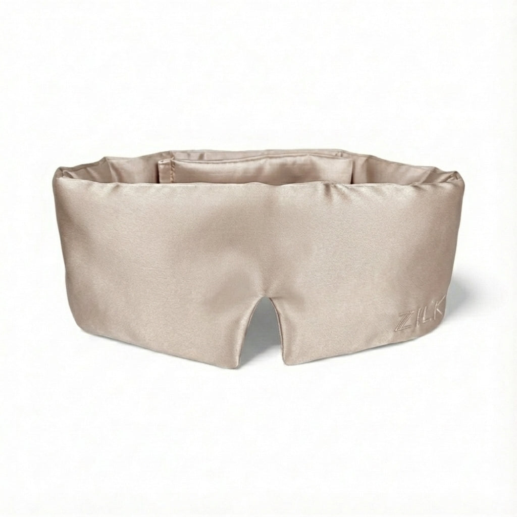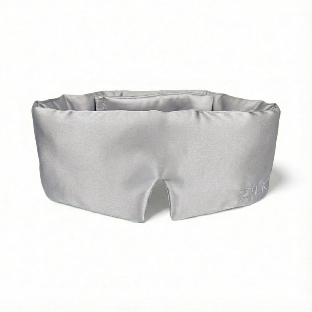 The ZILK Deep Restoration Sleep Mask is designed for complete darkness and calm. Crafted with NeuroSilk™ — our silver-ion infused 25-momme Mulberry silk — it helps calm skin, reduce light exposure, and support true restorative sleep.