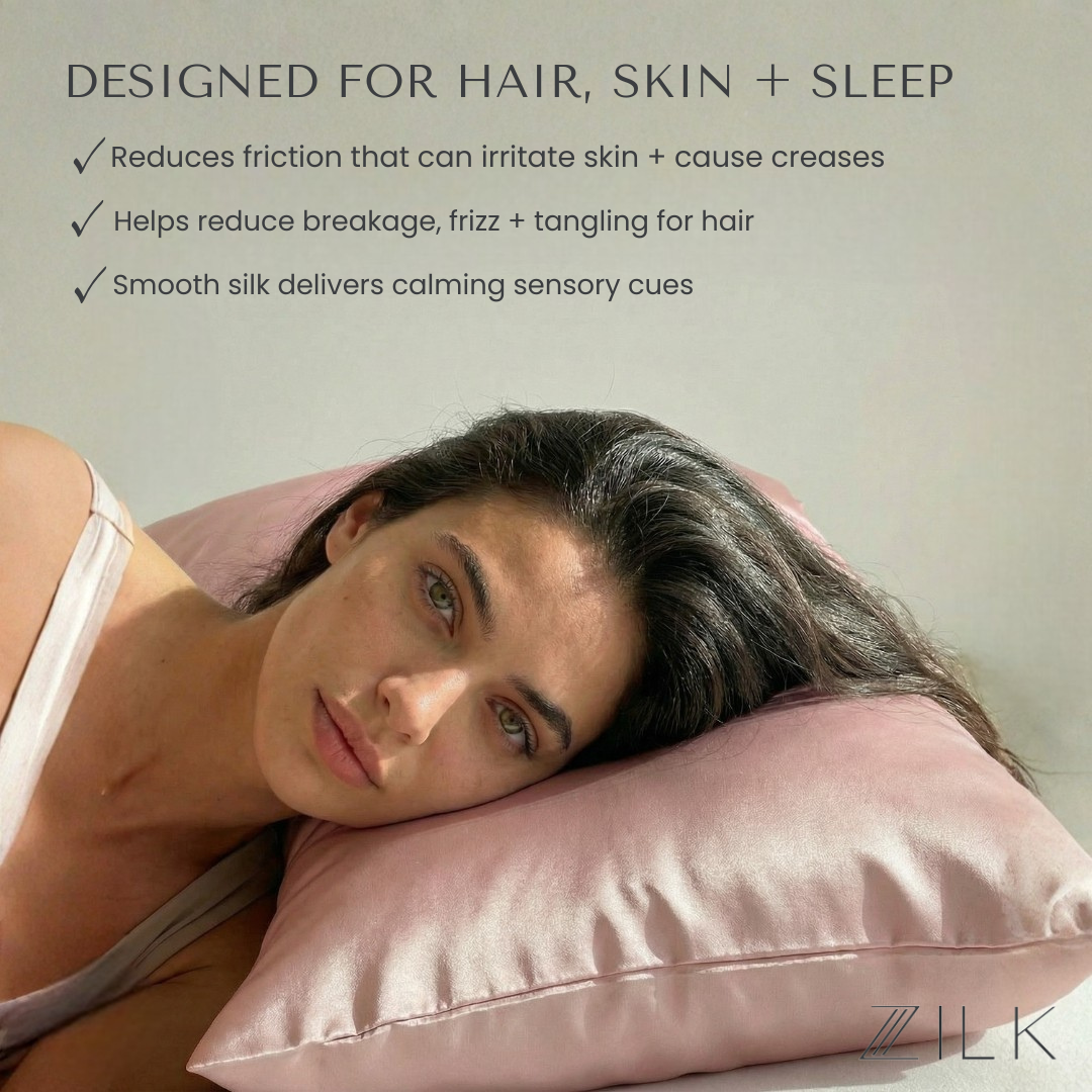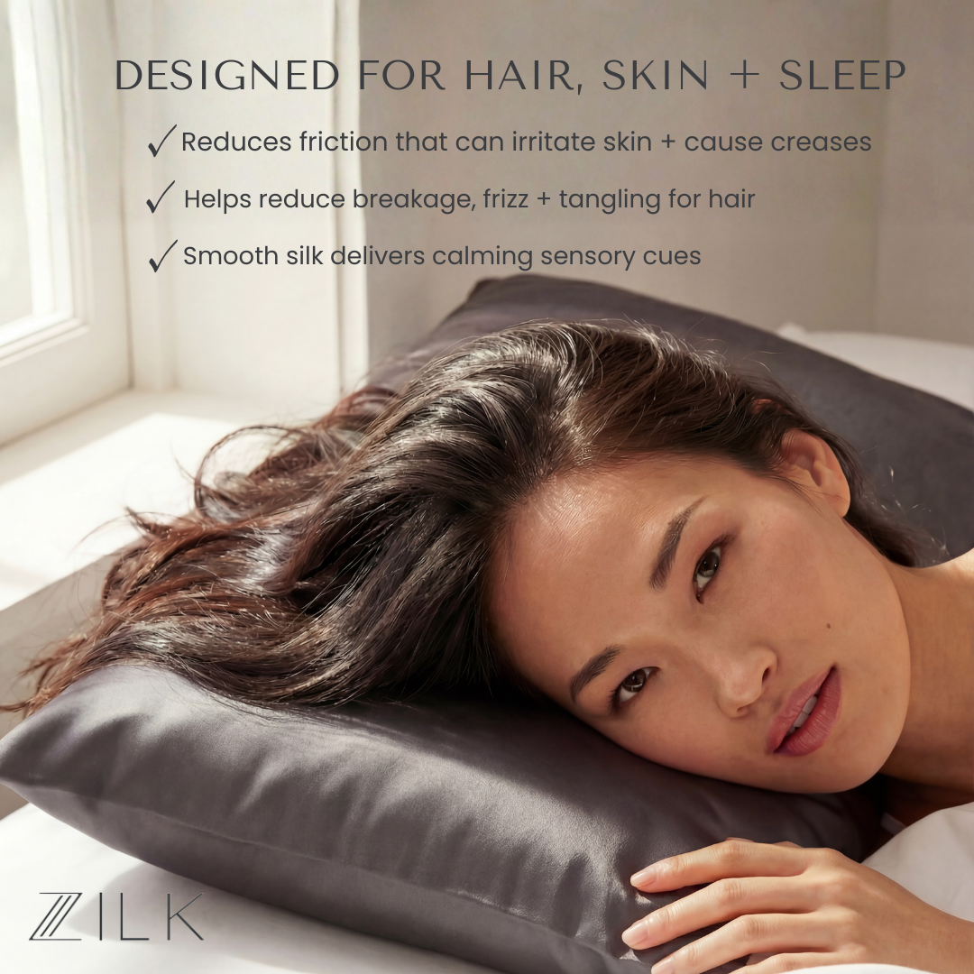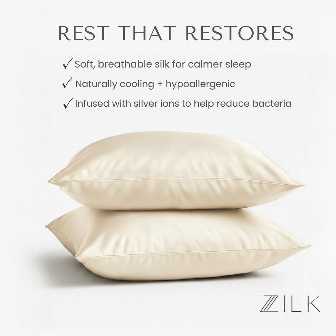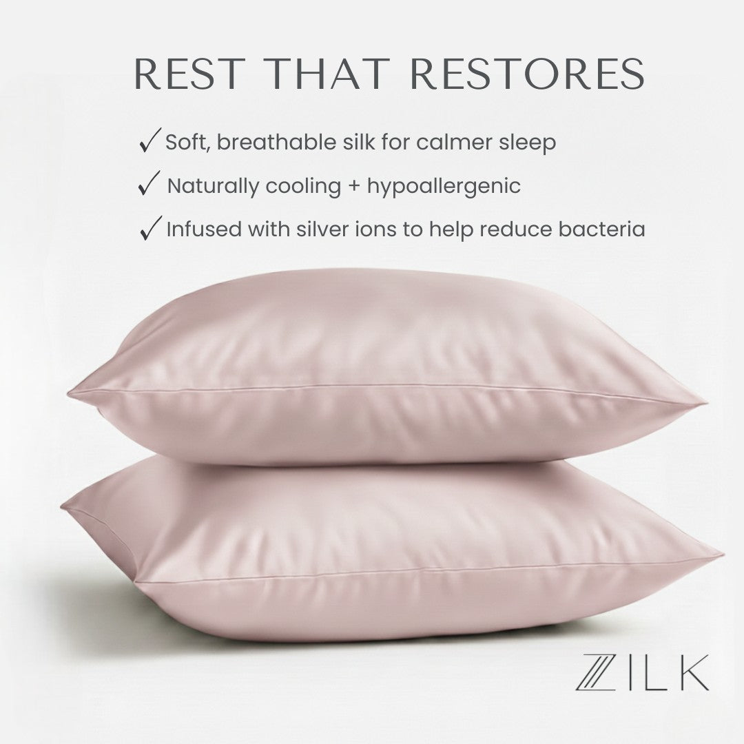 Each ZILK product is designed to bring balance back to body, mind, and beauty. Our silver-ion–infused Mulberry silk doesn’t just protect skin and hair—it transforms rest into a nightly ritual of calm.